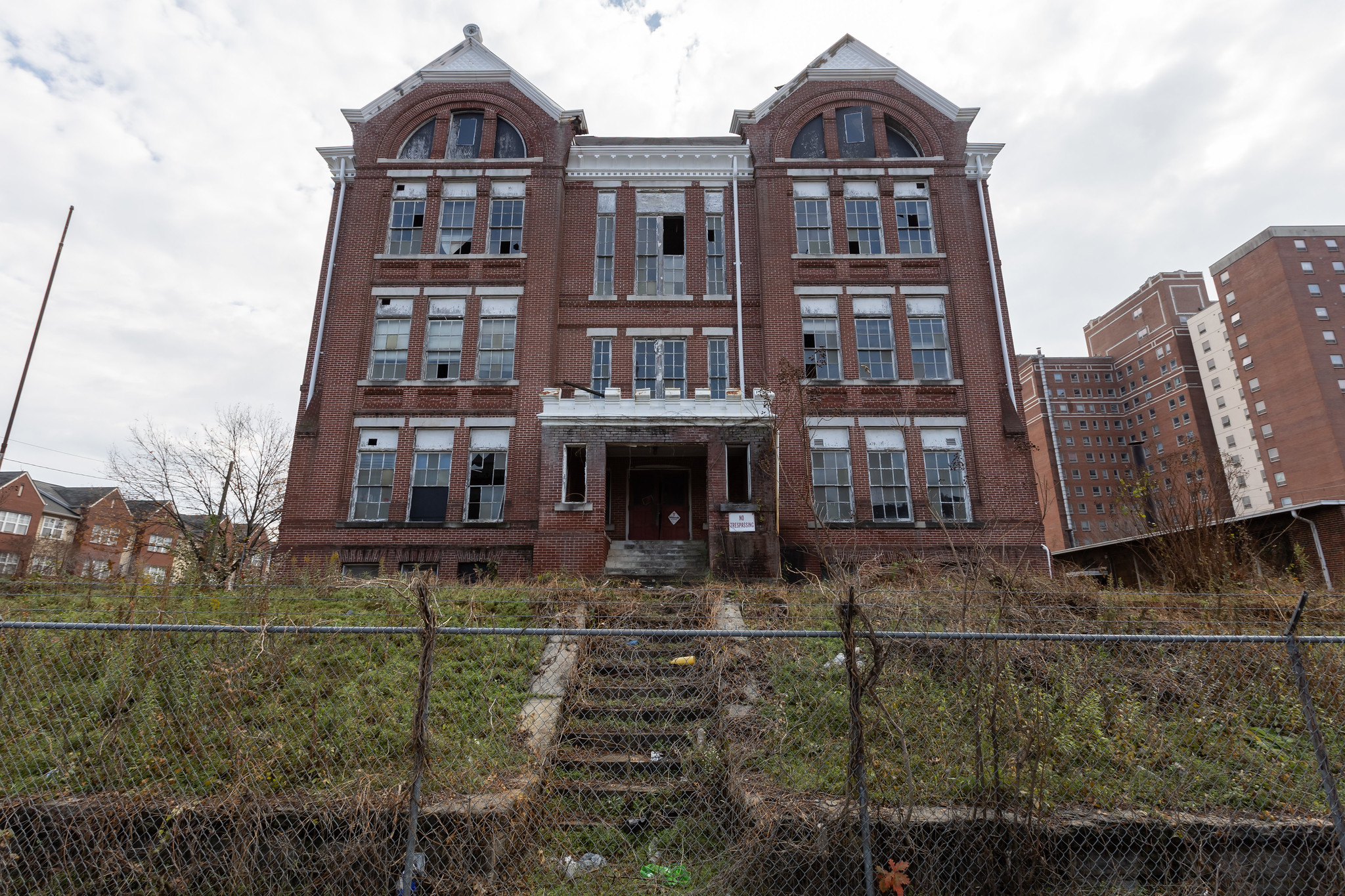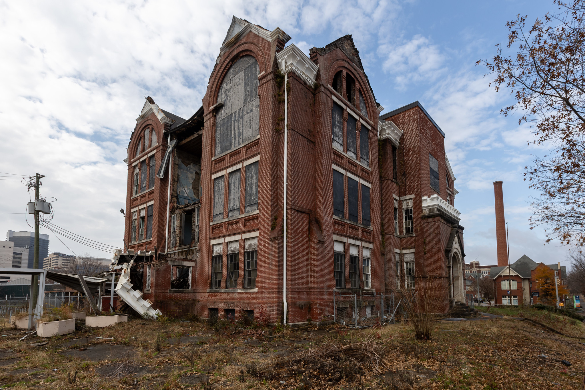 For more than a century, Powell School served generations of Birmingham students. A decade after its closure, on the evening of January 7, 2011, a massive fire erupted in the abandoned building. The blaze began on the third floor and was reported shortly after 9:00 P.M. Strong winds hampered firefighting efforts, but Birmingham Fire and Rescue Service brought the fire under control by approximately 10:30 P.M. The interior was gutted, the roof and upper floors collapsed, and the structure was left severely damaged.